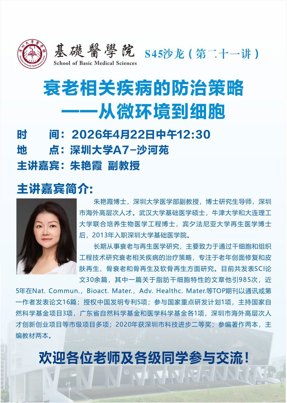 【基础医学S45沙龙第二十一讲】衰老相关疾病的防治策略一一从微环境到细胞