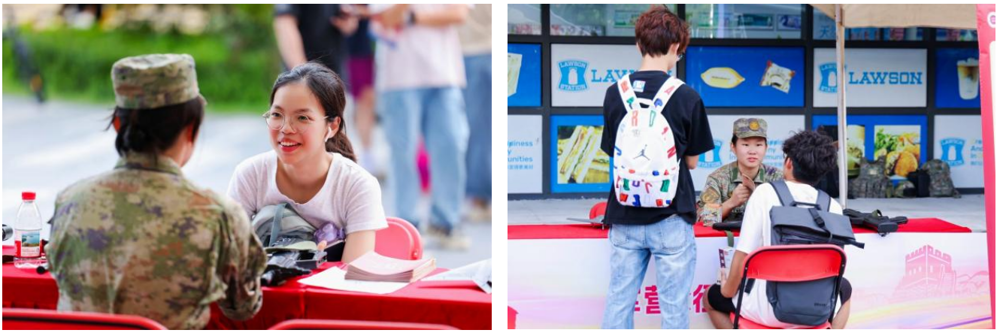 活动现场还设有征兵咨询摊位。退役学生志愿者在现场“坐班”,为有入伍意向的同学提供“一对一”咨询服务。从入伍条件、报名流程、优待政策,到军旅生活日常等,工作人员都进行了详细解答,并分享了自身军旅经历和心得体会。