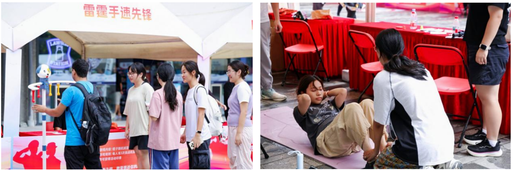 此外,“雷霆手速先锋”“你画我猜”“军工小作坊”“体能大挑战”“军事密码破译”等互动项目,分别从反应能力、团队协作、动手能力、体能素质和逻辑思维等角度,带领同学们全面体验了脑力、体力等方面的综合素养。