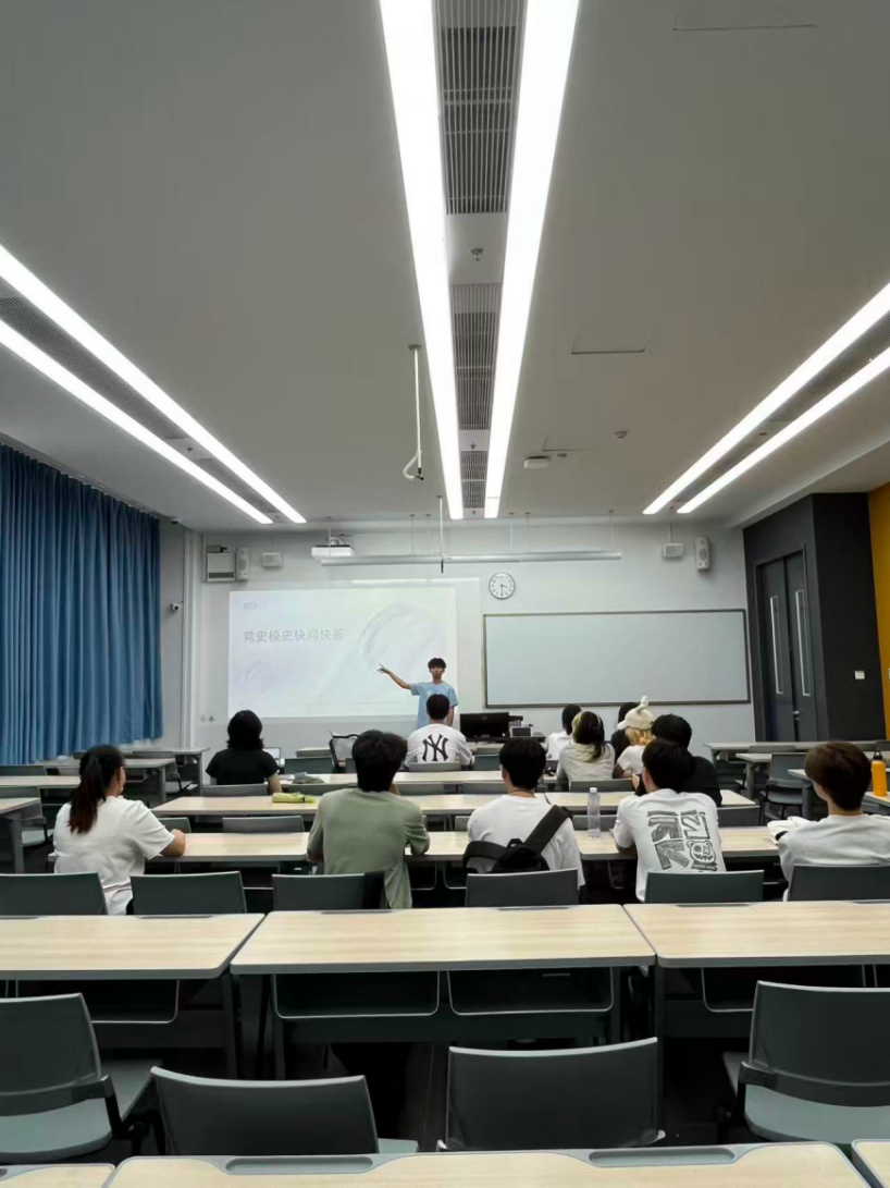 活动以嘹亮的深圳大学校歌视频拉开序幕。随后开展的“党史校史快问快答”知识竞赛环节,设置“校史抢答”“党史快问”双赛道,题库由班级同学精心整理并制作成PPT。校史赛道上,同学们对“深大创办年份”“校训‘三自’内涵”“校庆日”等问题应答如流;党史赛道围绕“中共一大开幕日期”“武装反抗第一枪”“遵义会议最突出贡献”等关键历史节点展开抢答,现场氛围紧张激烈、精彩纷呈。经过八轮角逐,最终8名同学分获一、二、三等奖。