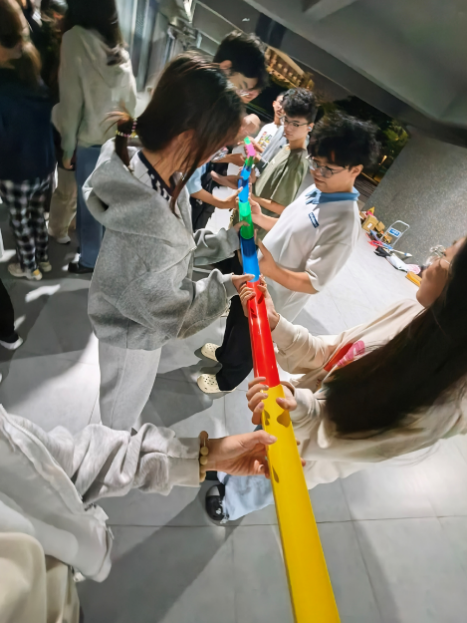 “蒙眼互打”:在蒙眼的情况下精准判断,犹如在复杂的分子结构中寻找关键药效团,锻炼了大家在未知环境下的专注力与决断力。