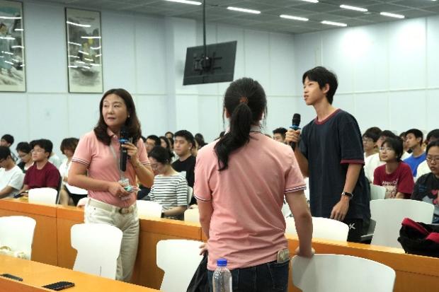 伴着现场高涨的热情,宣讲会上进行趣味问答互动与现场抽奖环节,同学们认真聆听、踊跃提问。吴迪老师与崔亚晓老师共同呼吁,青年学子应成为无偿献血的重要力量,既做爱心践行者,也做科学传播者,普及献血知识、带动更多人参与。