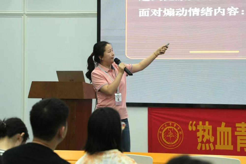 宣讲会上,深圳市血液中心的吴迪老师分享自身与家人的献血经历,讲述自己29年间累计献血达24次、总量7500mL 的公益历程,生动阐释了科学适量献血的健康意义,直面并破除网络上关于献血的负面传闻。