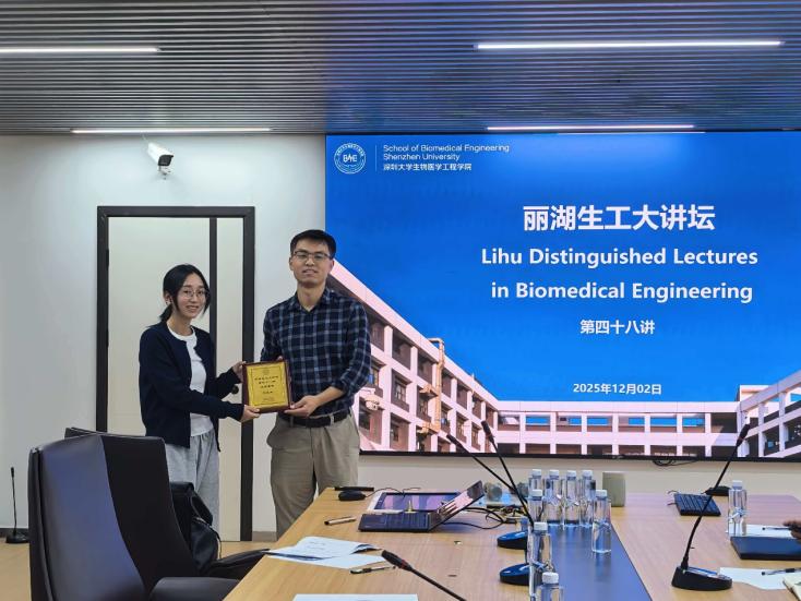 2025年12月2日,应深圳大学医学部生物医学工程学院吴佳英子助理教授邀请,中国科学院深圳先进技术研究院刘志远研究员做客“丽湖生工大讲坛”,作为第四十八讲嘉宾,在丽湖校区A2-517(1)会议室为我院师生带来题为“电生理电极:从静态,动态,到活态”的主题报告。此次讲座吸引了医学部生物医学工程学院众多师生的积极参与。