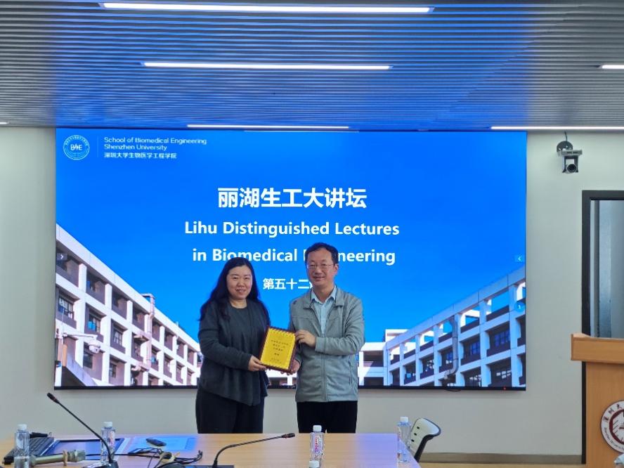 2025年12月21日上午,受深圳大学医学部生物医学工程学院沈圆圆教授邀请,南京大学物理学院声科学与工程系主任屠娟教授以“丽湖生工大讲坛”第五十二期特邀嘉宾身份,在丽湖校区A2-517会议室作题为“便携式超快超声诊疗技术发展与应用”的主题报告,医学部生物医学工程学院的师生积极参加此次讲座,该报告也吸引了北京大学深圳医院、深圳湾实验室等校外师生前来聆听。