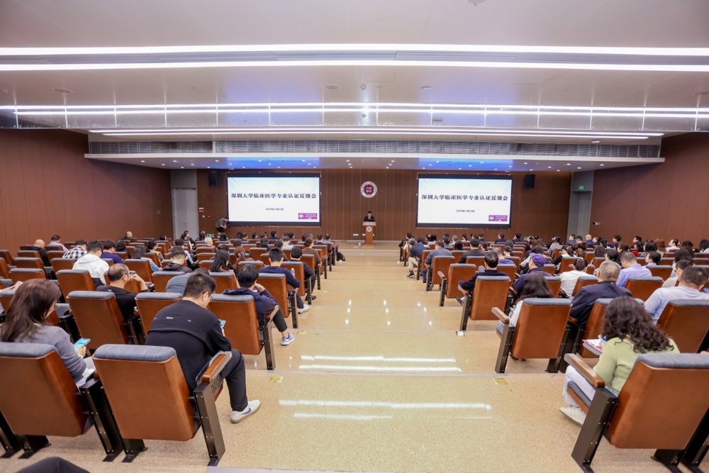 11月10日上午,临床医学专业认证汇报会在粤海校区校友广场多功能报告厅举行。专家组全体,深圳市教育工委副书记王汝津、高等教育处副处长金海驰,深圳市卫生健康委副主任周丽萍、科技创新和教育发展处副处长仇冰,深圳大学校长、中国科学院院士毛军发,副校长巢乃鹏,以及深圳大学各职能部门领导、医学部班子、深圳大学各附属(教学)医院领导、深圳大学教学指导委员会、教学督导团代表及医学部教师代表出席大会。会议由巢乃鹏主持。