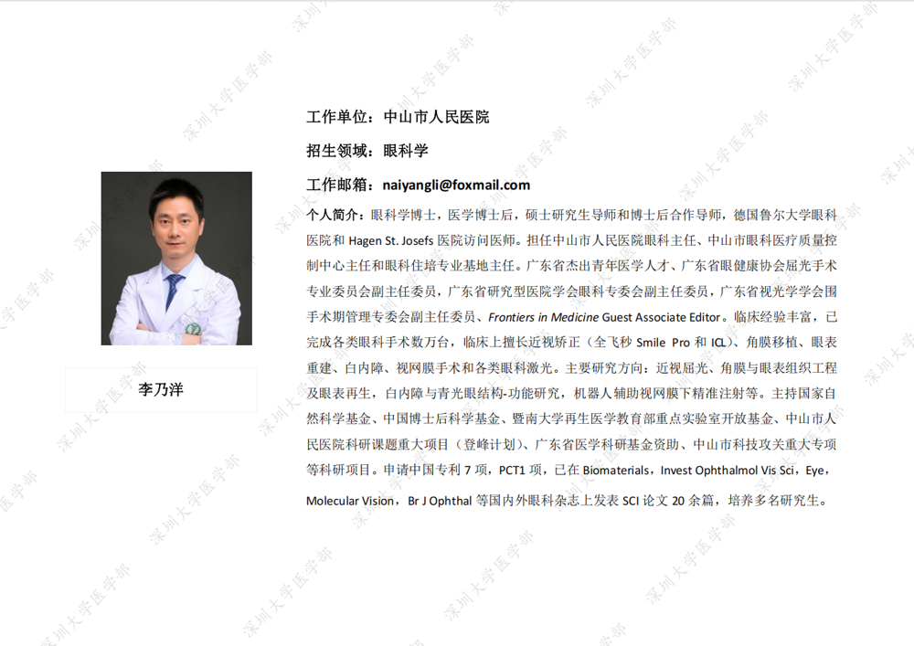 深圳大学医学部临床医学专业硕士研究生导师简介--中山人民医院